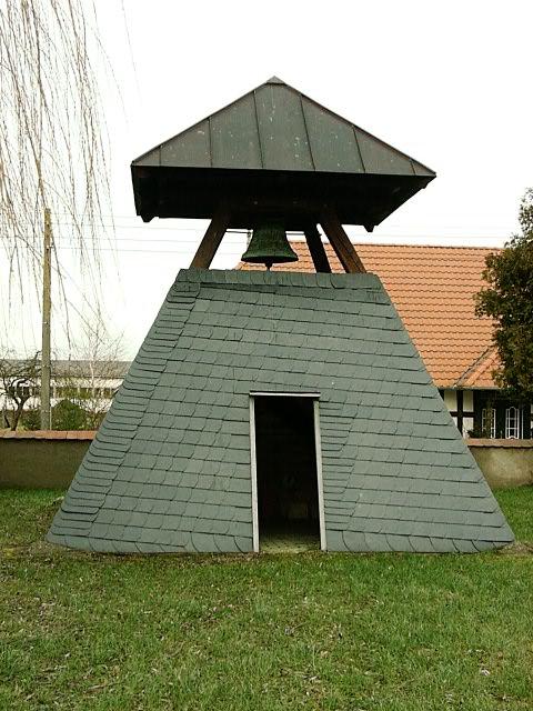 Eine Bronzeglocke aus dem 19. Jahrhundert hängt nun in einem Glockenträger,