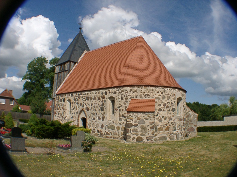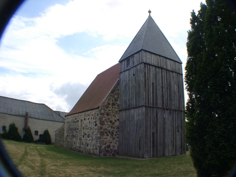 Man beachte den mit Eichenbohlen verkleideten Glockenturm ! Die verfaulten