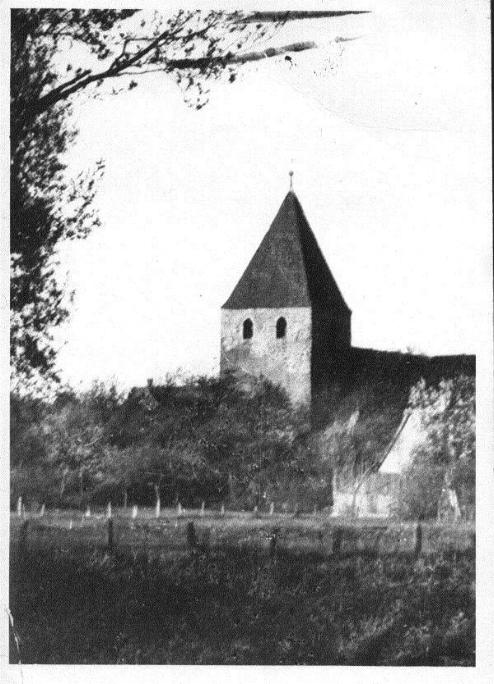Bild 3: Die alte Kirche vor 1900 noch mit der Einfassungsmauer und Haupteingang
