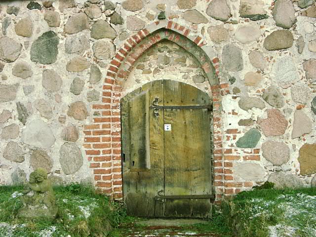 Aufnahmen v. 30.1.2002 / Die Innentür kann zusätzlich mit einem starken Balken verriegelt werden.