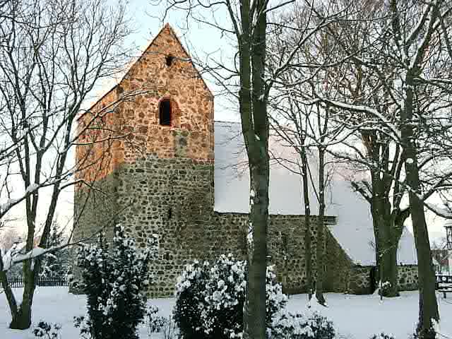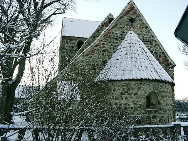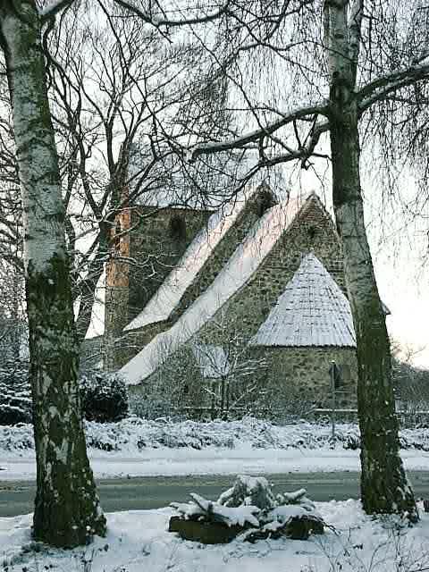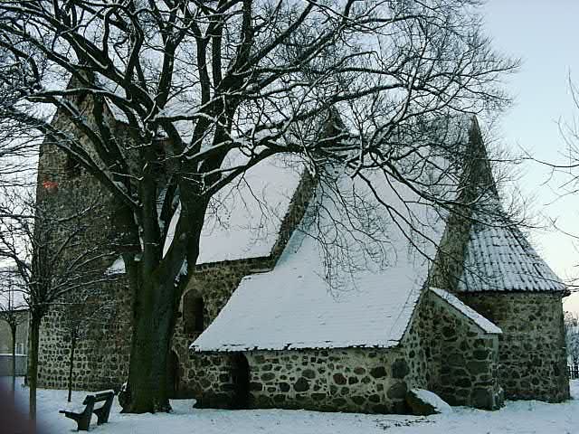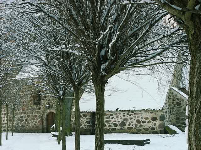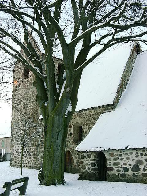 Rundgang im Uhrzeigersinn um die Kirche im Winter