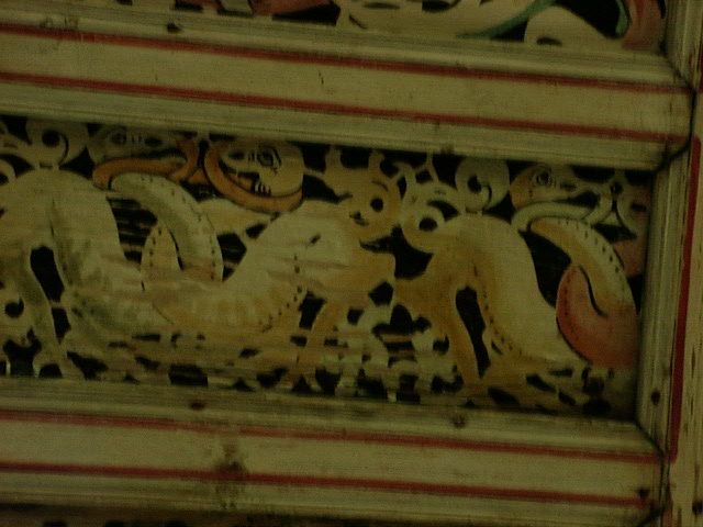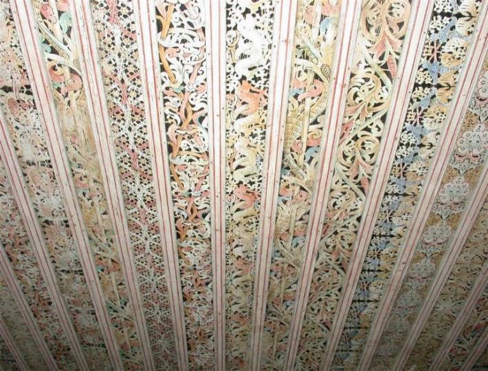 Schablonenmalerei auf der Maxdorfer Kirchendecke